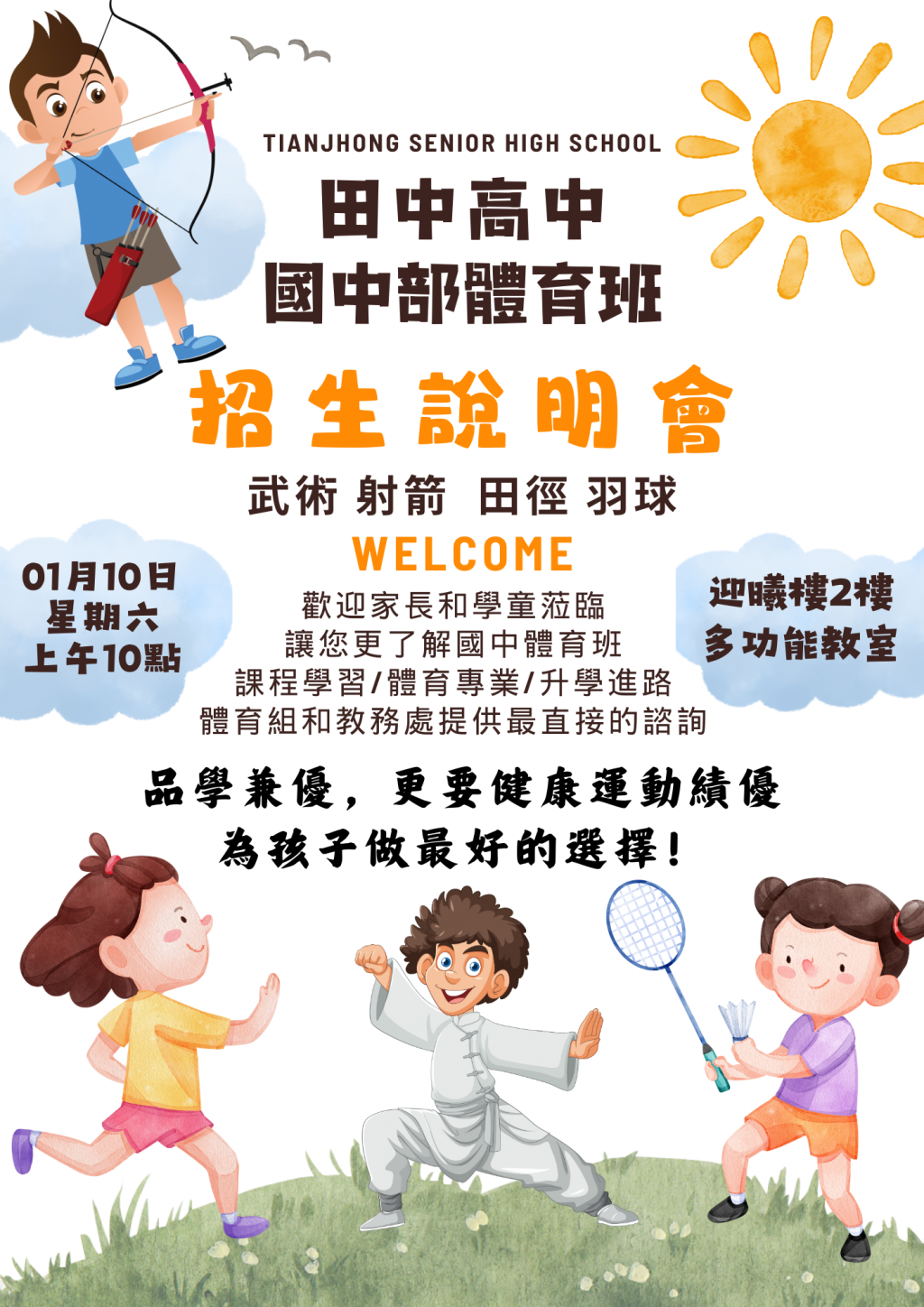 一、田中高中國中體育班招生說明會日期:115年1月10日。